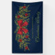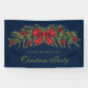 El ilustracion original de Destei de una festividad verde garland de abetos decorada con un gran arco rojo, Navidades rojos baubles y algunas luces falsas. El color de fondo es azul oscuro. También hay dos áreas de texto personalizables.