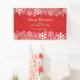 Pancarta de Navidades rojos con un patrón de copos de nieve y saludos de Navidad.