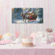 Santa conduciendo un trineo de un caballo para entregar regalos de Navidad en un pequeño pueblo