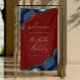 Welcome guests to your wedding with this elegant banner, featuring navy blue watercolor agate geode corner designs trimmed with faux gold glitter. Easily customize the gold-colored text on a burgundy background, with the names of the couple in whimsical handwriting calligraphy over a large lighter burgundy ampersand.