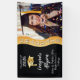 Celebre a su estudiante graduado favorito con este diseño de foto "Felicidades Graduado" en tonos negro y dorado. La plantilla presenta una apariencia ondulada en el lado izquierdo con la palabra "Graduado" en el fondo dorado ondulado, acompañada de una gorra de graduación en tono dorado a la izquierda y el año de graduación, nombre y escuela de su graduado en blanco. Simplemente actualice con la foto de su graduado a la derecha y la información a la izquierda. Ilustración y diseño original de Holiday Hearts Designs (derechos reservados) con crédito de foto de Logan Isbell a través de Unsplash.