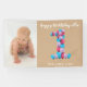 Una plantilla editable que puede cambiar para adaptarse a cualquier ocasión que tenga que ver con celebrar un aniversario o cumpleaños de un año! ¡Con un gráfico del número uno formado por globos brillantes! Para cambiar el texto, simplemente escriba sobre el texto del ejemplo en el área de personalización superior. A continuación, haga clic en la pequeña foto miniatura para subir y reemplazar con su propia fotografía. Impreso profesionalmente de alta calidad.