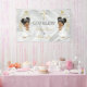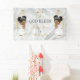 Hermosas niñas gemelas con su ropa de bautizo con collar de cruces de oro. Cruz de oro, satén blanco, filigree de oro y adorno de arco.