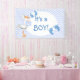 Pequeñas huellas de bebé adorables en un patrón de chevron azul claro. Todos los elementos de diseño se pueden mover y redimensionar para que se ajusten a todos los tamaños de los banners. Personaliza con nombre y fecha.