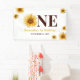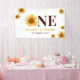 Agradable banner de la fiesta de primer cumpleaños con nuestro pequeño tema de girasol. Puede personalizar fácilmente todo el texto en un cartel.