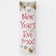 Añada este brillante y divertido Fiesta de Nochevieja de Año Nuevo - Banner colgante (con el año) a sus accesorios para fiestas de vacaciones! Diseñado con globos dorados y blancos sobre fondo blanco, con texto rojo y ráfagas de provocación. Para agregar el año actual, simplemente inserte el número, reemplazando el texto de ejemplo, y ya está hecho. ¡Disfrútalo!