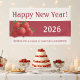 Celebra el año nuevo con esta llamativa pancarta temática de fresas. Personalizable con tu año o mensaje, es un fondo perfecto para fotos de fiesta de bayas. Este diseño incluye texto editable perfecto para personalizar tu celebración.
