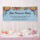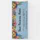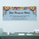Banner de bienvenida para una empresa/compañía en azul claro con fuentes negras encantadoras, un fondo azul y flores bonitas en amarillo, coral y azul. Banner de negocio floral en azul, coral y amarillo.