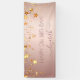 Una pancarta para una fiesta de cumpleaños glamurosa y femenina de 21 años (o de cualquier edad). Un oro falso rosa, fondo de aspecto metálico rosa con estrellas de oro falsas goteando. Personalice y añada un nombre escrito en oro rosa oscuro con una escritura de estilo con letras a mano moderna, fecha y edad 21. Es perfecto como una banner de bienvenida o como decoración fiesta.