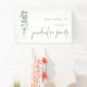 Nombre del Eucalyptus Bienvenido a la fiesta de graduación. Estilo minimalista moderno, con un elegante guión para el Partido de Graduación y el resto del texto puede ser fácilmente personalizado.