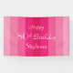 Qué banner único para una fiesta de cumpleaños número 80. Un fondo de rayas rosadas y tres líneas de texto rosa pálido de su elección - adecuado para cualquier nombre y edad. Seleccione Material interior o exterior. Todos los derechos reservados © 2016 Alan & Marcia Socolik.