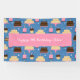 Añada un toque personalizado a la fiesta de cumpleaños de su hijo con este adorable cartel personalizado. La pancarta tiene un patrón de pasteles con velas en un fondo azul y rosa. Agrega un mensaje personalizado, como feliz cumpleaños y el nombre y edad de tu pequeña. ¡Hace una adición cuidadosa a un fiesta para un muchacho o chica muy especial!