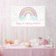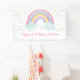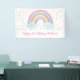 Esta bonita pancarta de cumpleaños muestra nuestro arco iris dibujado a mano y nubes en colores pastel.