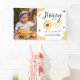Es el primer cumpleaños de tu pequeña abeja melífera - ¡celebra con un dulce y elegante banner de cumpleaños! Hazlo aún más especial con una foto de tu linda abejita, una plantilla moderna de saludo de cumpleaños y imágenes boho de abejas, panal de miel y colmenas. ¡Da la bienvenida a amigos y familiares para que se unan a la celebración!