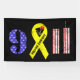 "9 11" en Estrellas y Rayas con la forma de las Torres Gemelas en la ciudad de Nueva York, una cinta amarilla con un rosa, y "Nunca Olviden" para honrar y recordar a las víctimas y héroes del 11 de septiembre de 2001.