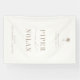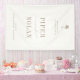 OASIS, beach wedding welcome banner sign. Features, taupe typography on sandy beige color background and palm tree illustration.
