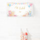 Create a magical and memorable baby shower with this charming woodland banner featuring adorable bunnies, soft pastel colors, and playful celebration details. Designed with balloons, streamers, hearts, and sweet forest touches, it brings a joyful and cozy atmosphere to your special day.