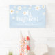 ¡Oh bebés! Pancarta de la margarita de estilo retro con dos camas gemelas con ducha de bebé, con colores y fuentes boho de los años 70. azul pálido.