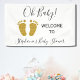 Este bonito cartel de bienvenida Baby Shower neutro en género incluye "¡Oh bebé!" en una tipografía elegante y pies de bebé purpurinas amarillos. Personalizable fácil. Utilice la Herramienta de diseño para cambiar el tamaño, estilo o color del texto.