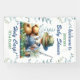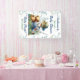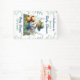 Blue and green fishing themed baby shower personalized banner. Cute watercolor illustration of a little boy fishing with his teddy bear surrounded by pretty foliage.