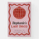 La pancarta Retro Wave Rosa y Roja para el fin de semana de despedida de soltera Last Disco irradia un aura de nostalgia animada y anticipación. Contra un fondo suave y rosa claro, una ola roja audaz enmarca la pancarta, infundiéndole un sentido de energía vibrante y movimiento. Situada en la parte superior, una impresionante bola de discoteca roja llama la atención y sirve como punto focal, encapsulando la esencia de una celebración dinámica y llena de espíritu.