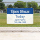 This real estate open house banner has display text says "Open House Today" but you can change the wording as needed. At the bottom, there's a place to add the real estate agent's name and phone number. The top portion is blue. The rest of the banner is white. All text can be edited or deleted.