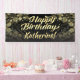 El oro bonito y la bandera personalizada festiva negra de la fiesta de cumpleaños emparedan la decoración. ¡Personalizado asombroso hermoso de la bandera impreso con el nombre para hombre o para mujer del invitado de honor! ¡Polvo del negro y del oro, bokeh y rayos de la luz de hadas para celebrar el cumpleaños especial!