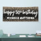 Celebra un hito especial con este banner horizontal de 50 años, diseñado con audaz y estilo festivo. En la parte superior e inferior, el llamativo confetti purpurina de imitación de oro y plata le da un toque divertido y festivo. En el centro, "Happy 50th Birthday" se escribe en una mezcla de caligrafía manuscrita y un tipo de letra limpio y moderno, lo que le da al cartel un aspecto elegante y elegante. Justo debajo, hay espacio para resaltar el nombre del chica de cumpleaños en un tipo de letra chunky negrita que destaca. Personalizable completo, este banner se puede cambiar para celebrar cualquier edad o hito, lo que lo hace perfecto para cumpleaños de todo tipo. Tenga en cuenta que el purpurina es un diseño impreso y que puede no aparecer claro o brillante cuando se vea de cerca. ¡Una manera divertida y elegante de hacer que la celebración de cumpleaños se sienta especial!