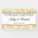 Un elegante banner colgante de boda dorado y negro diseñado con un borde dorado elegante sobre un fondo blanco, con texto: ¡Felicitaciones!, Los nombres de la novia y el novio y la fecha de la boda. Para personalizar, simplemente inserte su texto en nuestra plantilla fácil, reemplazando el texto de muestra. Asegúrese de ver toda la Colección de Estilo de Boda Elegante de Oro y Negro.