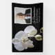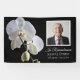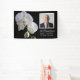 Recuerda la vida de tu ser querido después de su muerte con la elegante Banner de Funeral de la Celebración Negra de la Vida de la Orquídea Blanca. Este cartel de pancartas de vinilo adornado con flores de bonito incluye una fotografía floral de flores de orquídea blanca en el tallo con un fondo negro y las palabras En recuerdo. Siéntase libre de cambiar el texto y personalizarlo con una fotografía, nombre y fechas.