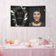 Un diseño de pancarta audaz en blanco y negro con un motivo de ataúd, flores oscuras y murciélagos junto con una foto personalizada. Creado para un cumpleaños gótico de RIP Treinta de elegante oscuridad, este estilo dramático agrega un refinado toque espeluznante a las celebraciones de hitos de Halloween para adultos.