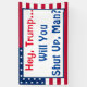 Oye Trump, ¿Te Callarás, Hombre? Cita de Biden. Biden support, la bandera estadounidense contra Trump anuncia manifestaciones y protestas.
