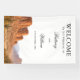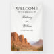 This design features a Canyon Desert wedding theme showcasing a portrait of rocky mountains with a sunset view on the background. A perfect theme for Red Rock Desert Weddings. This poster can be easily edited with your wedding details.