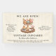 Bienvenidos a los clientes con encanto y dulzura usando este cartel de pastelería Vintage Cupcakes, perfecto para grandes aperturas, cabinas de vendedores o panaderías. Con una elegante bandeja intercalada de pasteles y pasteles acuarelas sobre un suave fondo de pinstripe color crema y beige, esta pancarta captura una estética nostálgica al estilo de una cabaña que invita inmediatamente a las sonrisas. La audaz inscripción "¡ESTAMOS ABIERTOS!" deja clara tu invitación, mientras que las secciones de personalizable de abajo te permiten promocionar tus servicios —ideal para las panaderías que reciben pedidos de bodas, duchas para bebés, cumpleaños y celebraciones de temporada. La sutil tipografía sérica y las obras de arte de la pastelería añeja a este banner un ambiente profesional y accesible. Está diseñado para uso en exteriores o interiores, y es ideal para ferias de alimentos, mercados de agricultores, frentes de café o tiendas de pasteles emergentes. Personalízalo con tu nombre de negocio, sitio web, detalles de contacto o agrega un mensaje de personalizado para satisfacer tus necesidades de promoción. Ya sea que lances tu nueva panadería o destaque tus dulces de autor, este banner es una manera deliciosa y funcional de atraer a los amantes de los quequitos con estilo.