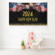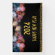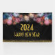Fuegos artificiales, purpurina dorada y letras doradas «Feliz Año Nuevo + año actual» banner que se ilumina en el fondo negro. Este banner se verá bien en la mayoría de los lugares y marcará el tono para una gran celebración. Elija entre diferentes tamaños y formas y encuentre lo que se adapte a su lugar.