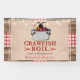 Este diseño rústico presenta un fondo de madera con cinta roja y blanca. Encima de esto hay una textura de arpillera con un cangrejo de río ilustrado personalizado. El tipo de letra rojo y negro del sif y del guión manuscrito es todo personalizable a tu evento, ya sea un hervidero de langosta, bogavante, marisco o hierba de pescado. ¡Celebra tu compromiso, cumpleaños, graduación o cualquier evento es estilo!