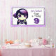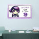 Cartel de cumpleaños personalizado del Fiesta de juegos de chicas. Chica de anime morado y negro con controlador de juegos.