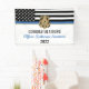 Este diseño incluye una bandera de la fuerza policial con rayas blancas y negras, y una delgada franja azul. Una gran manera de felicitar al nuevo graduado de la academia de policía. Personalizar con el nombre del oficial encargado de la aplicación de la ley graduado en oro. ¡Celebra este hito con estilo!