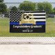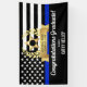 Cartel del Partido de Graduación de la Academia de Policía de la Línea Azul, personalizado. Crea una animada bandera policial con tus sentidas felicitaciones por el jubilado. Con una elegante insignia de oro y una corona de laurel refinada, se añade un toque de sofisticación al diseño.