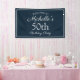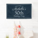 Banner de la fiesta de cumpleaños 50 en blanco y azul de la marina para la celebración de una mujer. El texto es un tipo de letra elegante del guión de caligrafía. Póngase en contacto con nosotros para obtener ayuda sobre la personalización o para solicitar productos coincidentes.