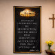 Elegante diseño moderno para Pascua, una cruz iluminada en el Calvario. ¡Jesús ha salido de la tumba, nuestro maravilloso Salvador vive! Negro y oro. Verso de la Escritura de Juan 11:25 de lo que Jesús le dijo a Marta sobre la Salvación. Personalizar de texto, fuente y colores con la herramienta de diseño. Un gran regalo para el Pastor.