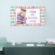 Macarones color agua dulce rosa, morado, azul y blanco con un banner de fiesta de cumpleaños personalizado de ambiente vintage.