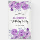 Accesorios modernos y femeninos de la fiesta de cumpleaños. Este elegante diseño cuenta con flores rosas púrpura de acuarela con hojas de color gris suave. Cada texto es personalizable para sus necesidades.