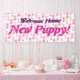 Un nuevo mascota es una ocasión festiva. Celebre la llegada de un nuevo perrito con la bandera rosada de la celebración de las patas. El adorno es rosado para un animal femenino. Cambie las letras para caber el nombre de mascota o para pedir al diseñador ayuda.
