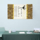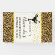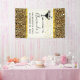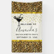 Un banner de bienvenida para una fiesta de despedida de soltera con un patrón elegante. Manchas exóticas de leopardo negro sobre un fondo dorado. Estilo salvaje pero elegante. Una silueta negra de copa de martini añade un toque de fiesta al diseño. Bordes de falso foil dorado enmarcan el texto de la fiesta. También decora el diseño confeti falso dorado.