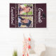 Patrón de flores Felicidades Graduado 2 Foto Telón de fondo Banner. Tendencia patrón de flores dibujadas a mano en púrpura. Personalice con 2 fotos - puede usar fotos antiguas y nuevas.