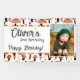 Patrón de hongo naranja Cumpleaños de foto de otoño Fiesta pancarta de fondo. Un hermoso patrón de hongos naranja y negro en colores de otoño, un nombre de niño personalizado y foto. Una pancarta de cumpleaños de Halloween o de otoño encantadora.