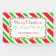 Patrón rayado en rojo, verde y blanco. Rayas oblicuas rojas, verdes y blancas y el texto "Feliz Navidad".
