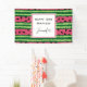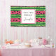 Una pancarta de cumpleaños con un lindo patrón de sandía. Corteza verde en capas de rayas junto con una capa de rayas rosas con semillas negras dentro. Diseño divertido y veraniego. Un cuadrado encima con tu texto dentro.