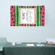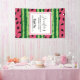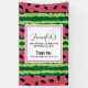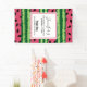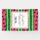 Una pancarta de cumpleaños con un lindo patrón de sandía. Corteza verde en capas de rayas junto con una capa de rayas rosas con semillas negras dentro. Diseño divertido y veraniego. Un cuadrado sobre la parte superior con un texto personalizado dentro.